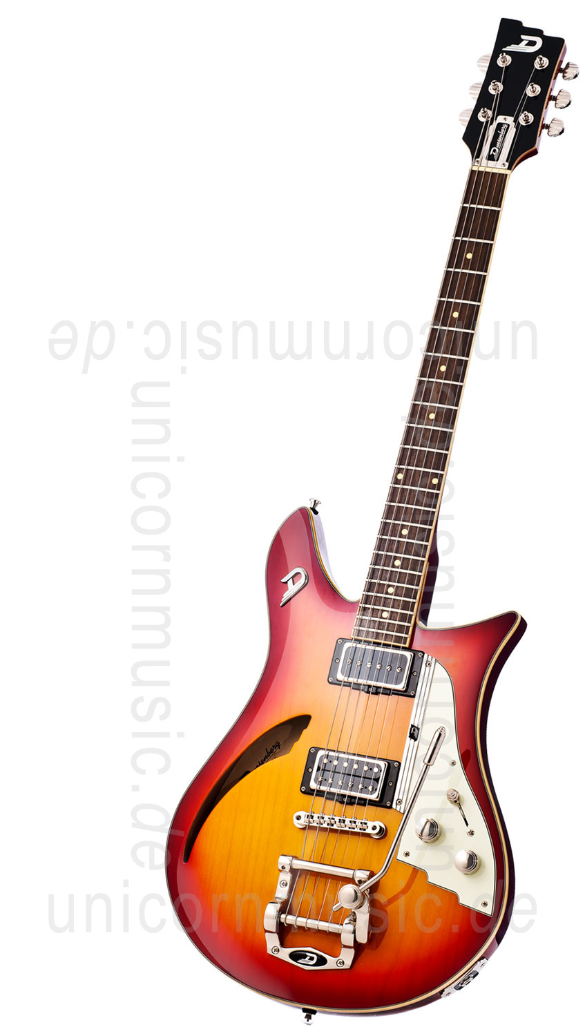 In der Double-Cat-Serie trifft ein schnittiges Double-Cutaway-Design auf die außergewöhnliche, für Duesenberg typische Art-Deco-Ausstattung. Gepaart mit den vielen Innovationen wie z.B. den Z-Tunern, der speziellen Pickup-Bestückung samt ihrer Verschaltung und dem Deluxe Tremola, hebt sich diese Gitarre gekonnt vom großen Rest ab. Den zum Teil hohlgefrästen Erle-Body der Double Cat, auf dem eine flache Ahorndecke sitzt, ziert ein F-Loch im klassischen Cat-Eye-Stil. Auch bei dieser Duesenberg setzen ein Domino P-90 und ein Grand Vintage Humbucker den prägnanten Sound perfekt in Szene, der im direkten Vergleich z.B. zur Starplayer TV eine Spur drahtiger und rauher ausfällt.