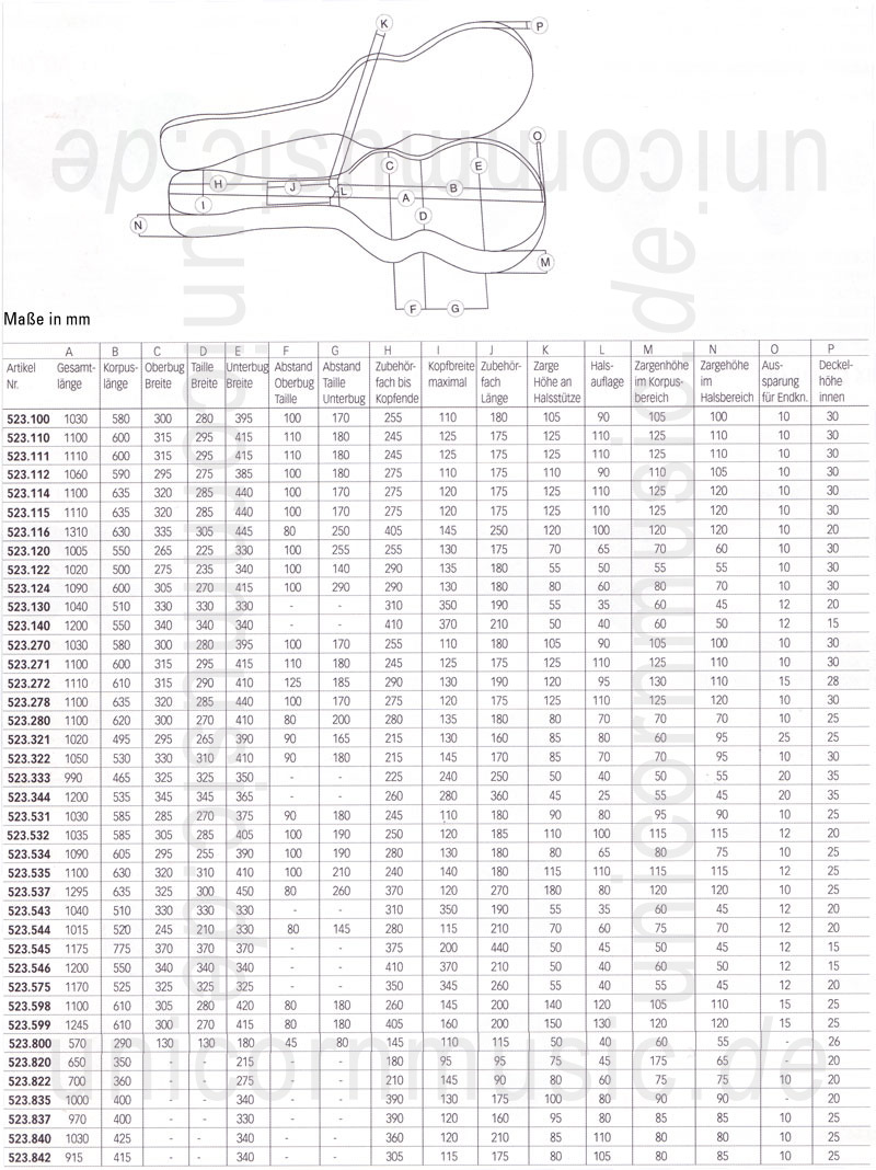 Ermitteln Sie anhand unserer Maßtabelle und Ihrer Gitarre/Bass einfach den passenden Koffer. Wenn Sie Ihr Modell gefunden haben brauchen Sie uns nur die Artikelnummer per Email zusenden. Wir machen Ihnen dann ein Angebot! Die Preise liegen zwischen €70,- und €170,-.