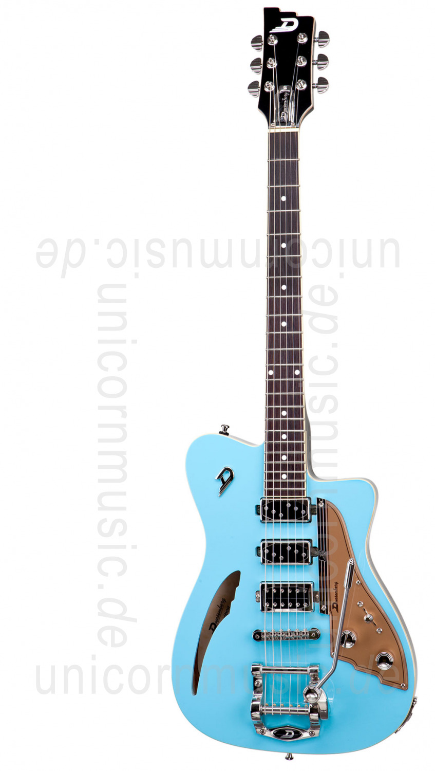 Damit diese Gitarre auch so kalifornisch klingt, wie sie aussieht, haben wir neue Tonabnehmer für sie entwickelt. Die Single Twin-Pickups in Hals- und Mittel-Position sind reinrassige Singlecoils, die das aufregende Glitzern der Sonne in den Pazifikwellen akustisch eingefangen haben und dennoch kein Brummen diesen Eindruck stört! Für einen muskulösen Steg-Sound ist der bewährte Grand Vintage Humbucker verantwortlich, und das Schimmern des Caribou-Tons besorgt natürlich das gleichermaßen faszinierende wie perfekt funktionierende Duesenberg Diamond Deluxe Tremola. Wer das Tremola nicht braucht, kann auf die Caribou-Version mit fester Brücke zurückgreifen.