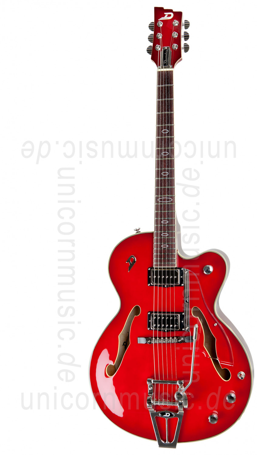 Die bewährte Duesenberg-Pickup-Bestückung mit Domino P-90 und Grand Vintage Humbucker wird hier ergänzt um ein "Mid-Shift"-Poti, das dem bewährten Duesenberg-Klangspektrum eine weitere Facette hinzufügt. Die Imperial zeigt einem allzu gemütlichen „Handschuh“-Jazz-Sound die forsche Harke, wirksam unterstützt von dem höchst funktionalen Deluxe Tremola, das hier natürlich mit einem langen Hebel ausgestattet ist.