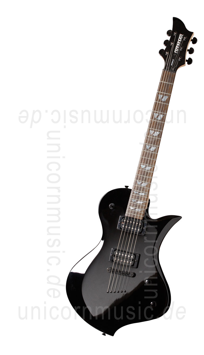Die Fernandes Ravelle X BLK verbindet eine einzigartige, unverwechselbare Optik mit guten Materialien und solider Verarbeitung. Der Korpus der Fernandes Ravelle X BLK besteht aus Erle, der geschraubte Ahornhals ist mit einem 22-bündigen Griffbrett versehen. Der Sound der Fernandes Ravelle X BLK wird über zwei High-Output-Humbucker übertragen.