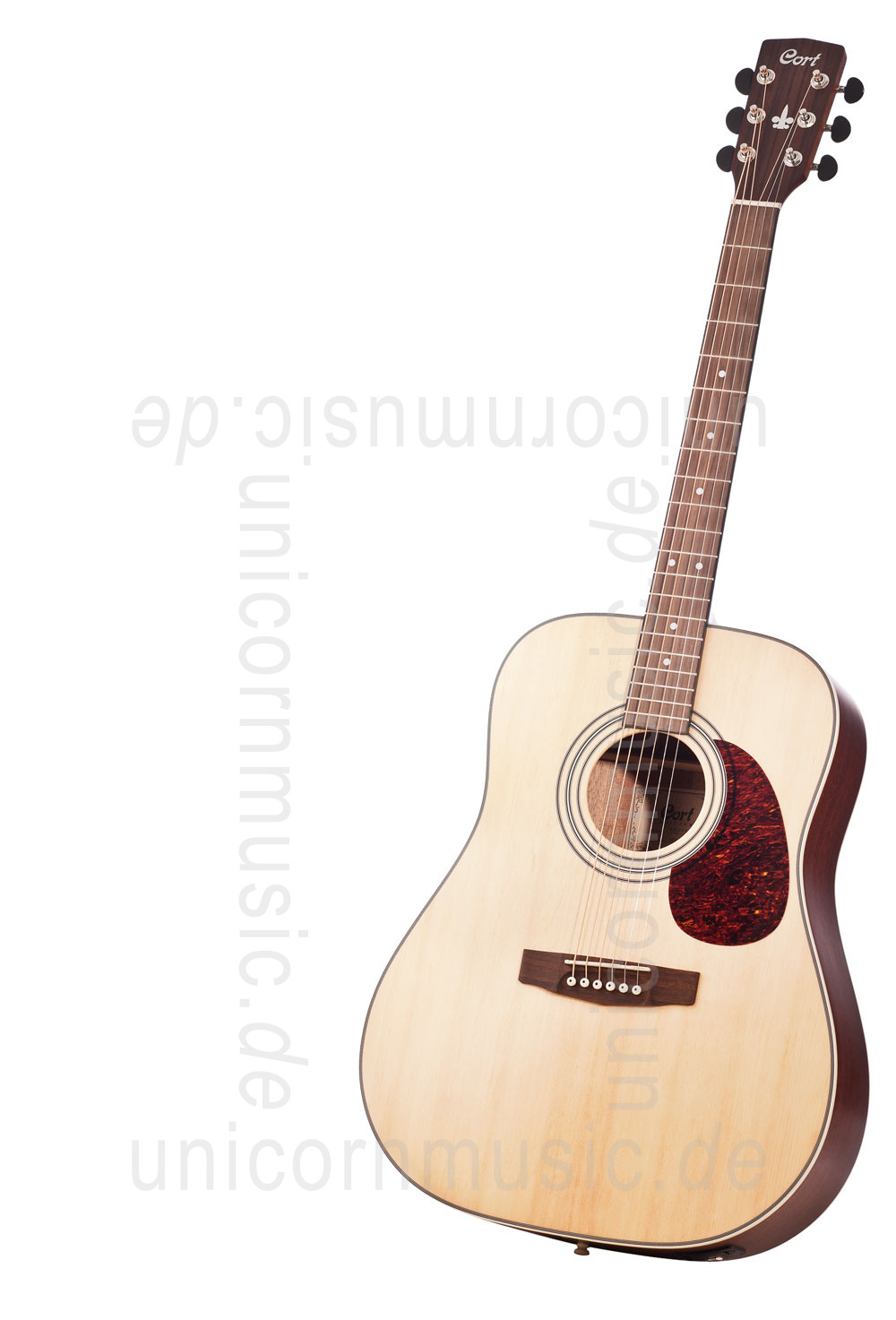 Die CORT Earth 70 E ist das günstigste Mitglied der CORT Familie mit integriertem Tonabnehmer und überzeugt durch eine in dieser Preisklasse ungewöhnlich hochwertige Verarbeitung. Ein flacher, leicht zu greifender Hals und ein guter Sound machen diese Gitarre zum idealen Werkzeug für den Einsteiger mit schmalem Budget. Die Zargen und der Boden der Gitarre sind aus laminiertem Mahagoni. Die massive Fichten-Decke der Gitarre ist leicht gewölbt. Im Vergleich zur flachen Bauweise lassen sich gewölbte Decken und deren Innenbeleistung bei gleicher Belastbarkeit deutlich dünner ausarbeiten, wodurch Gewicht gespart werden kann. Eine leichte Decke führt zu einer schnelleren Ansprache, einer sehr kurzen Reaktionszeit, höherer Lautstärke und deutlich besserer Dynamik. Die CORT Earth 70 E besitzt eine schnelle Ansprache und klingt kräftig, brillant und klar. Auch der integrierte Fishman Tonabnehmer nimmt seine Aufgabe ernst und sorgt für eine überraschend natürliche Wiedergabe.