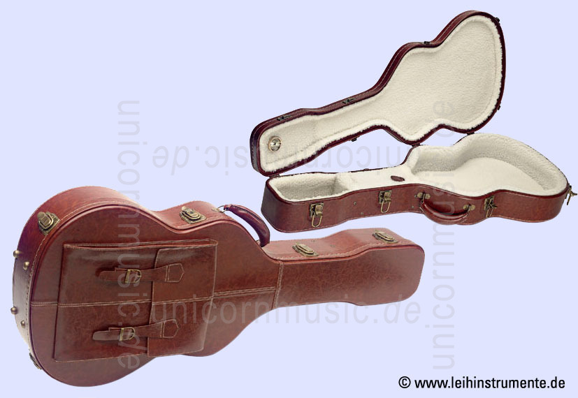 Luxusgitarrenkoffer für Westerngitarre mit Echtlederbezug und Wollinterior + Hygrometer